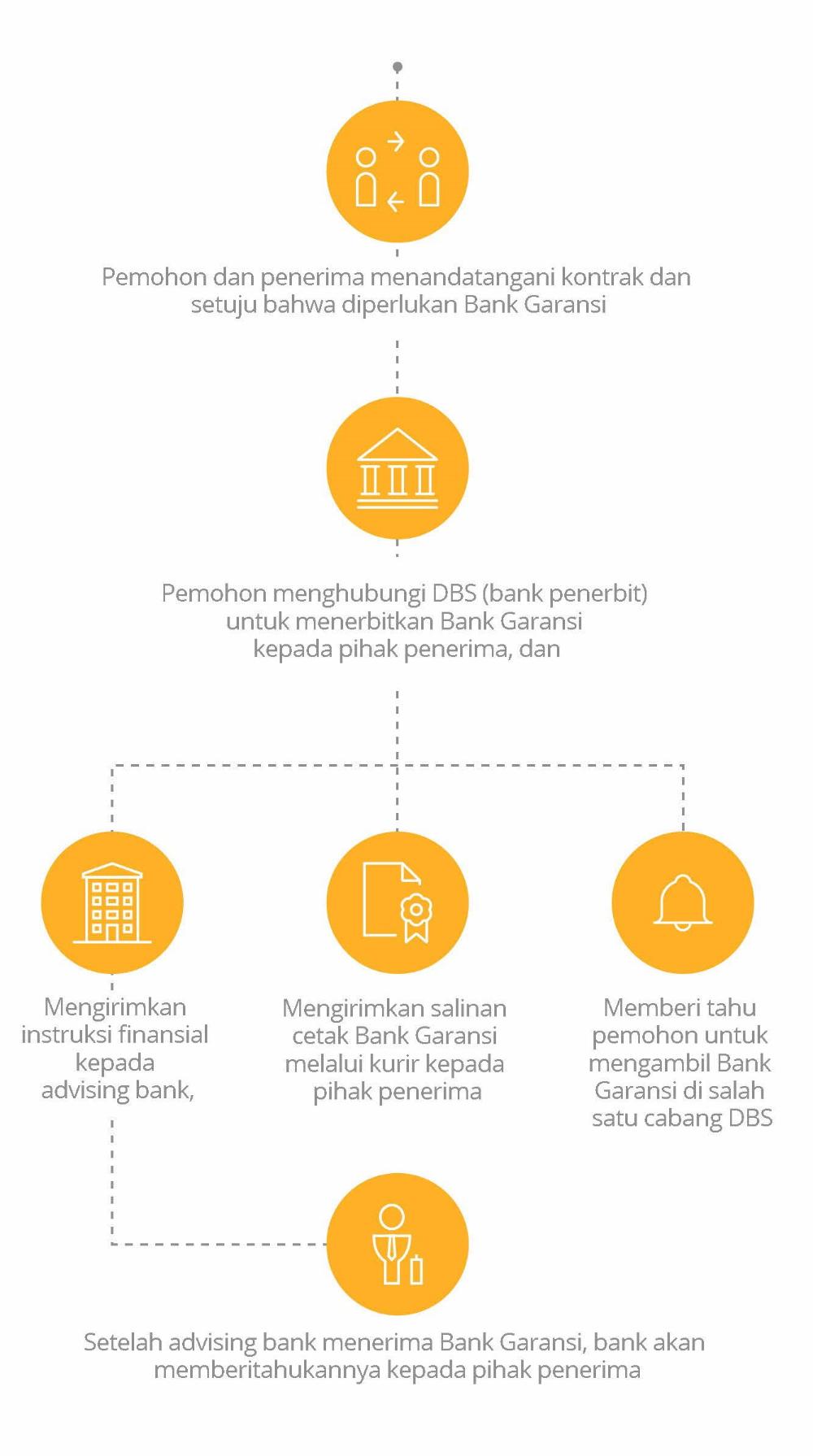 Jaminan pembayaran yang terpisah dari kontak sebagai kepastian pembayaran kepada pihak yang berhak menerima pembayaran Anda Serahkan permohonan Anda melalui salah satu cabang DBS, atau IDEAL™ (platform perbankan online kami)