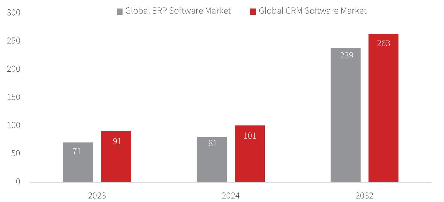 Figure 1: Global ERP & CRM software market size (USDbn)