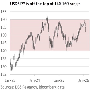 Takaichi has pledged to resign if the Liberal Democratic Party-led coalition fails to secure a majority at the February 8 snap election. Opinion polls show the LDP regaining a standalone majority, with at least 233 out of 465 seats in the Lower House of Representatives. Although voters are sceptical about Takaichi’s fiscal stimulus addressing cost-of-living issues, they are receptive to her proposal to cut or suspend the consumption tax on food, her tougher stance on immigration, and her national security posture against China. Despite the formation of a Central Reform Alliance, voters are unconvinced that the opposition is united enough to govern or deliver a coherent economic programme. Going by how USD/JPY rose after the LDP lost its majority in the lower house election in October 2024 and the upper house in June 2025, we cannot rule out a lower USD/JPY if the LDP regains its lower house majority.