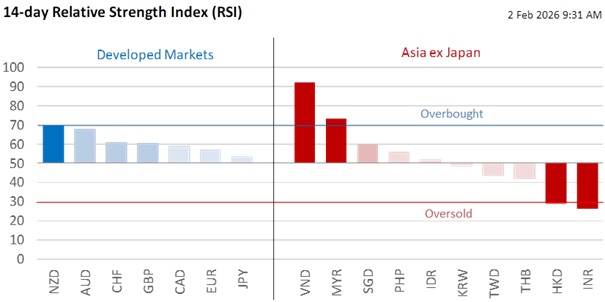 We are not reading too much into the market’s reaction on the final session of January, following US President Donald Trump’s nomination of Kevin Warsh as the next Fed Chair, when Jerome Powell’s term ends on May 15. The sharp 9% sell-off in gold on January 31 came after a spectacular 30% rally earlier in the month, while the DXY Index rebounded 1.7% after falling nearly 4% over January 19-27. In both cases, the moves look more like position-driven profit-taking than the start of a durable trend reversal.