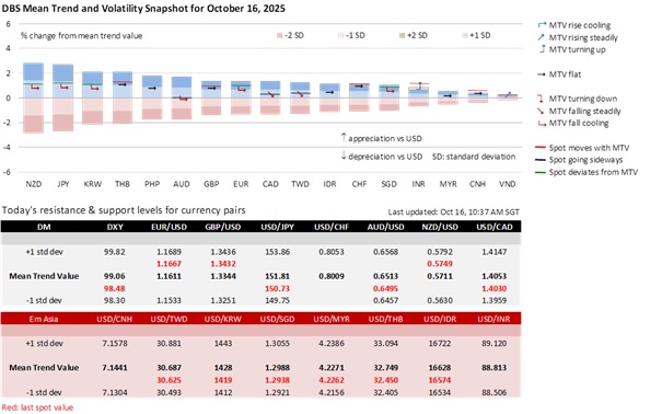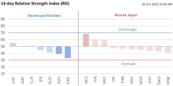 Expectations of two more Fed rate cuts this year have increased and is weighing on the USD. Certainly, a prolonged government shutdown and renewed US-China trade tensions do not add to confidence. But there could be two-way volatility as well amid risks from US-China trade negotiations. Indeed, US Treasury Secretary Bessent has threatened a decoupling from China if it implements export controls on rare earths, and the US is also working with G7 countries for a joint response on the sidelines of the IMF Autumn meetings in Washington. Bessent has also said that a stock market decline will not deter the US from taking strong action. Given the importance of rare earths for many high-tech applications, including in defence, a US-China trade deal may not be achievable if the issue is unresolved. Risks of tariff escalation, retaliatory trade bans on some commodities, or G7 co-ordinated measures cannot be discounted.