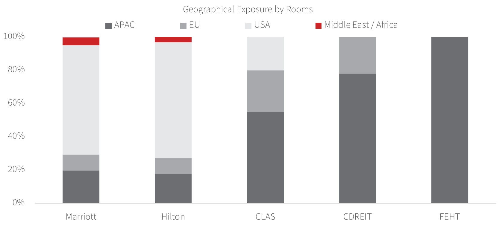 Figure 1: US hoteliers have c.3-5% direct room exposure to the Middle East