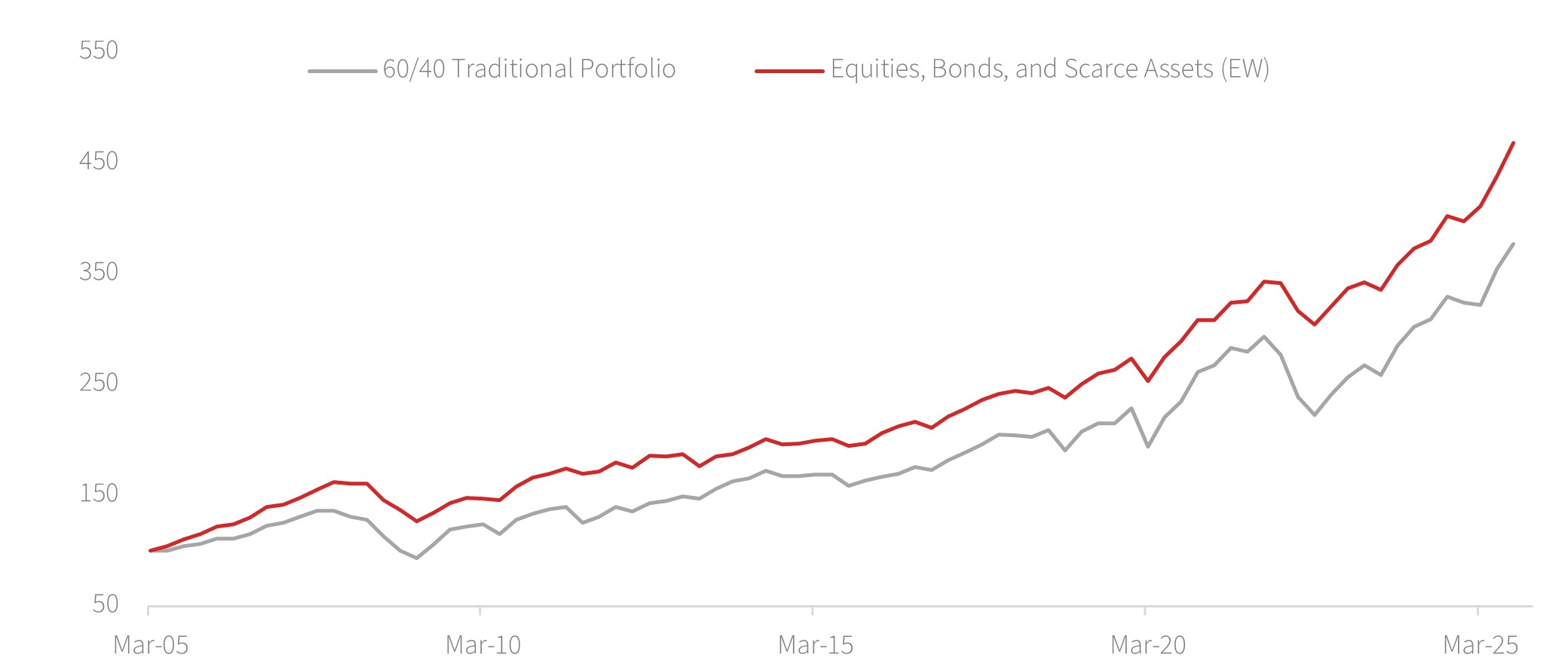 Figure 1: Strong outperformance of scarce assets
