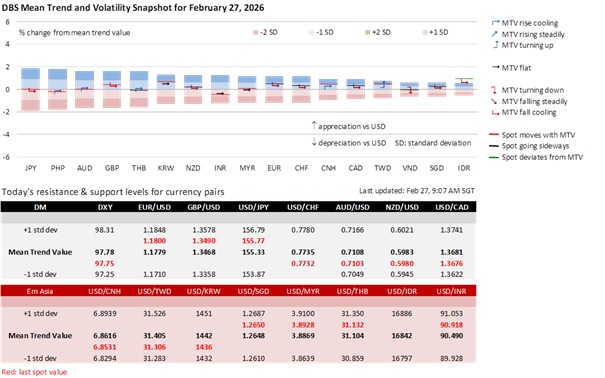 JPY is softening against regional trends, with USD/JPY trading back towards 156. Media reports this week suggest that PM Takaichi had expressed concerns over rate hikes to BOJ Governor Ueda, while her two picks to replace outgoing BOJ board members are also considered to be dovish. It is perhaps unwise to speculate if political considerations may influence the well-respected Governor Ueda, and hard data continue to support the case for another BOJ rate hike. Tokyo’s headline inflation for Feb released today shows a rebound to 1.6% y/y, in contrast to expectations for a decline. Underlying inflation pressures is still persistent, with Tokyo’s core-core CPI rising to 2.5% y/y. JPY could also be supported if market volatility picks up, with risks ranging from US-Iran tensions to AI disruptions still pertinent.