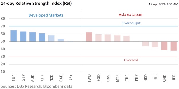 The DXY Index has surrendered more than 80% of its gains from the Iran conflict. The Index is down 1.8% this month to 98.1, approaching the 97.6 level before Operation Epic Fury began. The S&P 500 Index ended overnight above February 27’s 6878 level despite the IMF’s warning that a protracted Iran conflict could trigger a global recession. With Brent crude prices holding mostly below $100 per barrel the past week, markets have been holding out for a diplomatic solution, driven by President Donald Trump’s April 8 temporary ceasefire. Despite the failure of the first talks in Islamabad, Trump’s decision to blockade the Strait of Hormuz has strengthened the resolve of EU nations and China to push for a diplomatic solution.